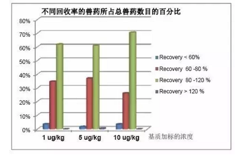 2樣品前處理——簡(jiǎn)單、快速、通用采用一步溶劑超聲萃取法,處理過(guò)程簡(jiǎn)單、快速、通用,96%以上的獸藥回收率在60~120%之間,此前處理方法適合多獸藥殘留的快速篩查。