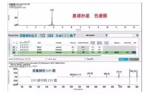 Figure 2.某超市雞肉中篩查出恩諾沙星的結(jié)果。