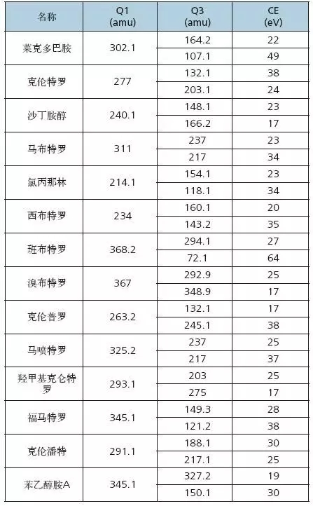 β-受體激動(dòng)劑主要用于治療人、畜支氣管哮喘和支氣管痙攣。在用于畜牧飼喂時(shí)被非法用于促進(jìn)動(dòng)物生長(zhǎng),減少脂肪沉積,提高瘦肉率的作用。人類長(zhǎng)期食用含β-受體激動(dòng)劑殘留的食物可能會(huì)引起中毒,并對(duì)健康造成極大的傷害。目前,我國(guó)禁止在使用動(dòng)物的飼養(yǎng)中使用。由農(nóng)業(yè)部發(fā)布的國(guó)家標(biāo)準(zhǔn)《豬尿中β-受體激動(dòng)劑多殘留檢測(cè)液相色譜-串聯(lián)質(zhì)譜法(農(nóng)業(yè)部1025號(hào)公告-11-2008)》和農(nóng)業(yè)行業(yè)標(biāo)準(zhǔn)《動(dòng)物尿液中11中β-受體激動(dòng)劑的檢測(cè)(農(nóng)業(yè)部1063號(hào)公告-3-2008)》,對(duì)動(dòng)物尿液中β-受體激動(dòng)劑液相色譜-質(zhì)譜/質(zhì)譜測(cè)定方法進(jìn)行了規(guī)定。