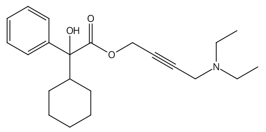 Benzeneacetic acid, α-cyclohexyl-α-hydroxy-, 4-(diethylamino)-2-butynyl ester (9CI); Cyclohexaneglycolic acid, α-phenyl-, 4-(diethylamino)-2-butynyl ester (8CI); 2-Butyn-1-ol, 4-(diethylamino)-, α-phenylcyclohexaneglycolate (ester) (8CI); (RS)-Oxybutynin; (±)-Oxybutynin; 4-Diethylamino-2-butynyl α-phenylcyclohexaneglycolate; Ditropan; Ditropan XL; Kentera; Oxybutynin; Oxytrol; Uromax