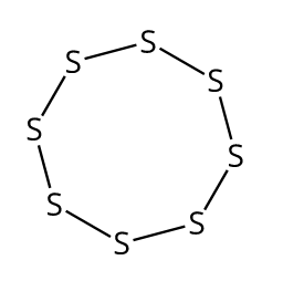 Cyclo-S8; Cyclooctasulfane; Cyclooctasulfur; NSC 603623; Octasulfur; Octathiocane; Orthorhombic sulfur; S8; Sulfur (S8); Sulfur molecule (S8); Sulfur octaatomic molecule
